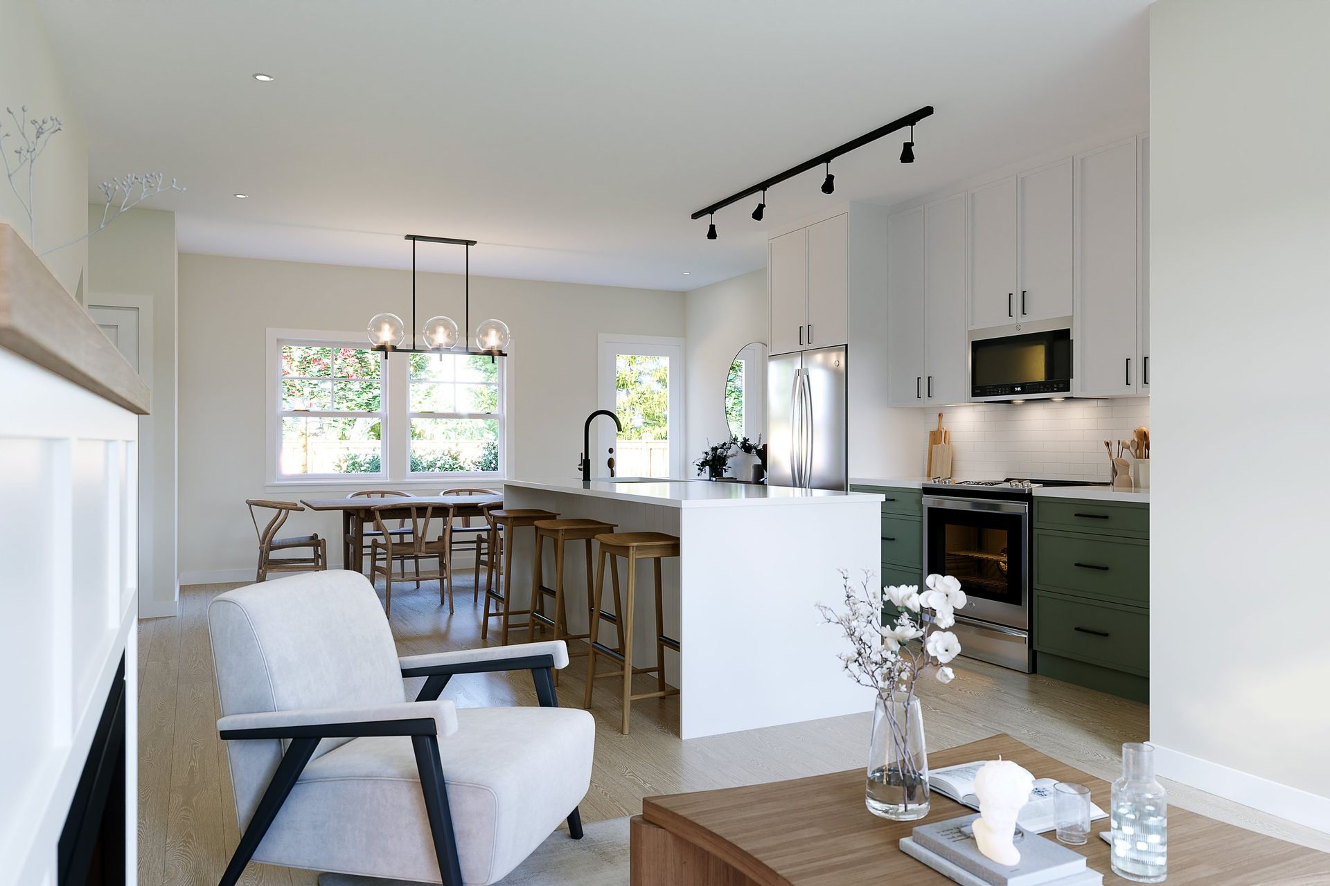 Folk showcases the perfect fusion of modern sophistication and timeless style, featuring high-quality, durable finishes throughout. The calming color scheme pairs beautifully with natural wood accents, creating a welcoming and warm ambiance. Each layout at Folk includes custom millwork tailored to its specific design, with select homes offering built-in desks, pantries, and entryway benches. These thoughtful details enhance functionality while enriching aesthetics, positioning Folk as the pinnacle of comfort and practicality.