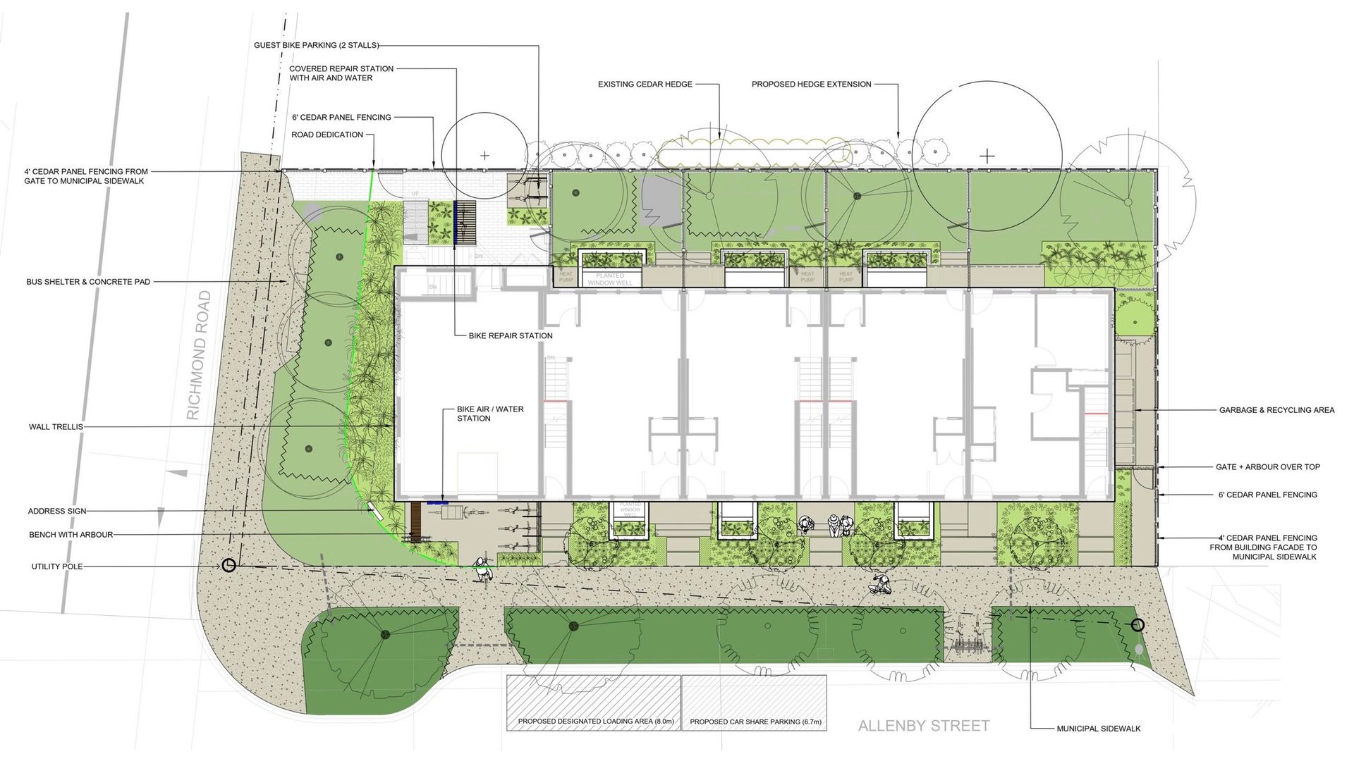 We fully embrace cycling as a vital part of life. Every residence includes two designated standard bike stalls, along with a spacious cargo bike stall (approximately 3’3” x 8’6”) for each 2- and 3-bedroom home. Families with broader biking requirements will benefit from two additional cargo stalls. Our bike storage areas are designed with flexible wall storage for smaller bikes and accessories, as well as electric bike charging. Easily accessible from Allenby, these bike facilities feature an overhead bay door and a wide central aisle.