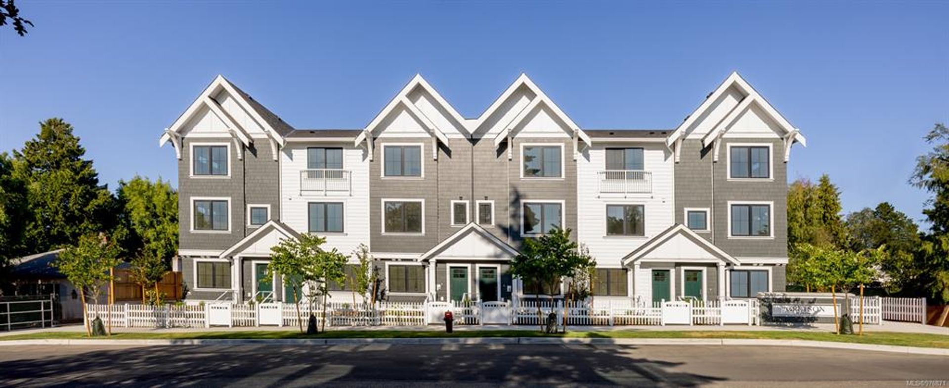 Introducing the newest addition to the Abstract Townhome Collection: Greyson, a collection of traditional townhomes nestled away in Victoria’s burgeoning Uptown neighbourhood. This elegant 3 Bed, 3.5 Bath home offers 1,450 sq ft of living space with 9’ ceilings, generous windows & natural colours to embody a sense of ease & welcome. The gourmet kitchen showcases two-tone shaker-style matte white & slab style brushed… oak cabinetry, quartz countertops and island, stainless steel appliance package, built-in full height pantry and desk. Spacious dining area is perfect for hosting friends and family. Each home is thoughtfully designed to balance the ideals of connection and privacy, featuring individual balconies & welcoming patios separated by white picket fences and lush landscaping. All homes include EV ready garage and are equipped with rough-in for AC and future solar power. Nestled away in a lush residential setting, where great parks, schools & shopping are moments away. Price + GST.